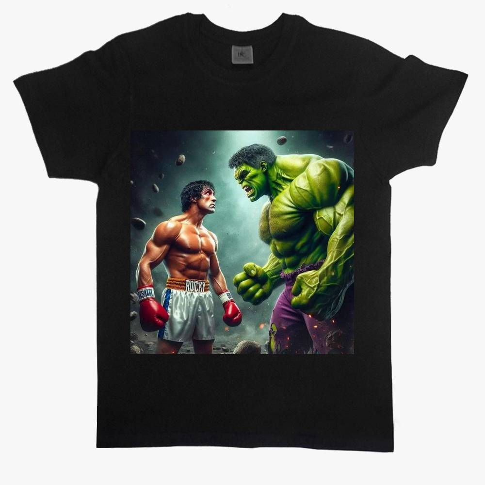 T-shirt με στάμπα ” Hulk Vs Rocky “.